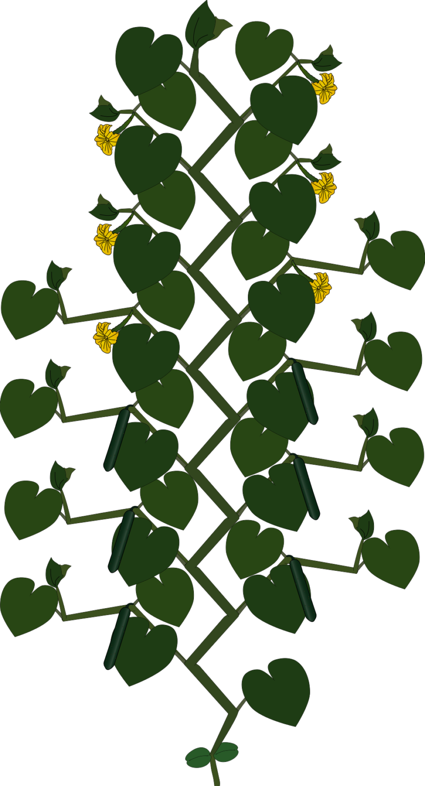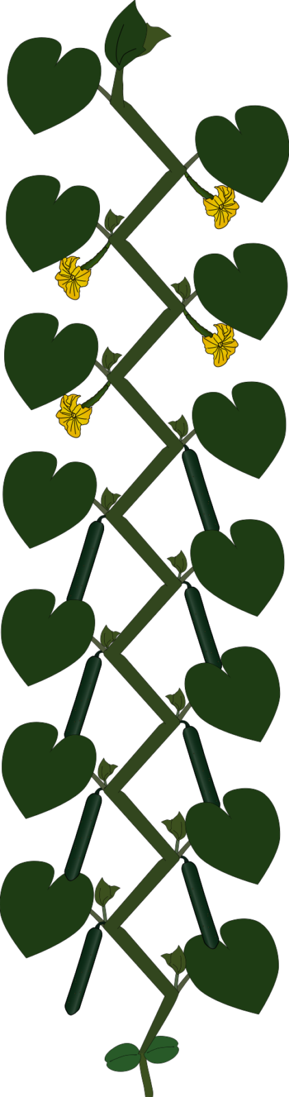 This is a diagram of a cucumber trained as a single stem with the parent vine as the main stem.