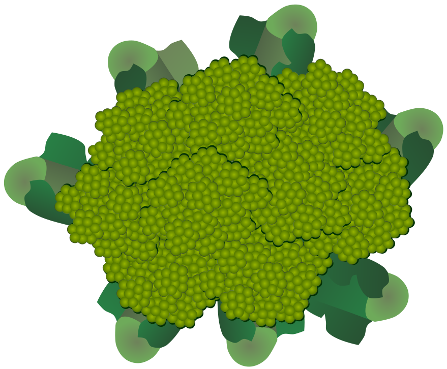 This is an illustration of a light green cauliflower. Because of its green color, it could easily be mistaken for broccoli, but it is definitely a cauliflower. Chlorophyll, a pigment found in the leaves, gives the green color to green cauliflower.