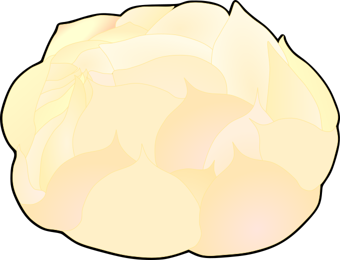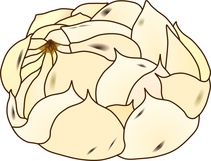 This is an illustration of a lily bulb with overlapping white scales, known as lily root. It is utilized as edible and resembles overlapping petals.
