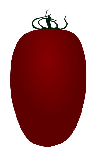 This illustration is inspired by the elongated plum-shaped mini tomato variety 'Aiko'. It has thick flesh and is said to contain about twice the amount of lycopene compared to regular tomatoes, making it a good variety for both raw eating and cooking.
