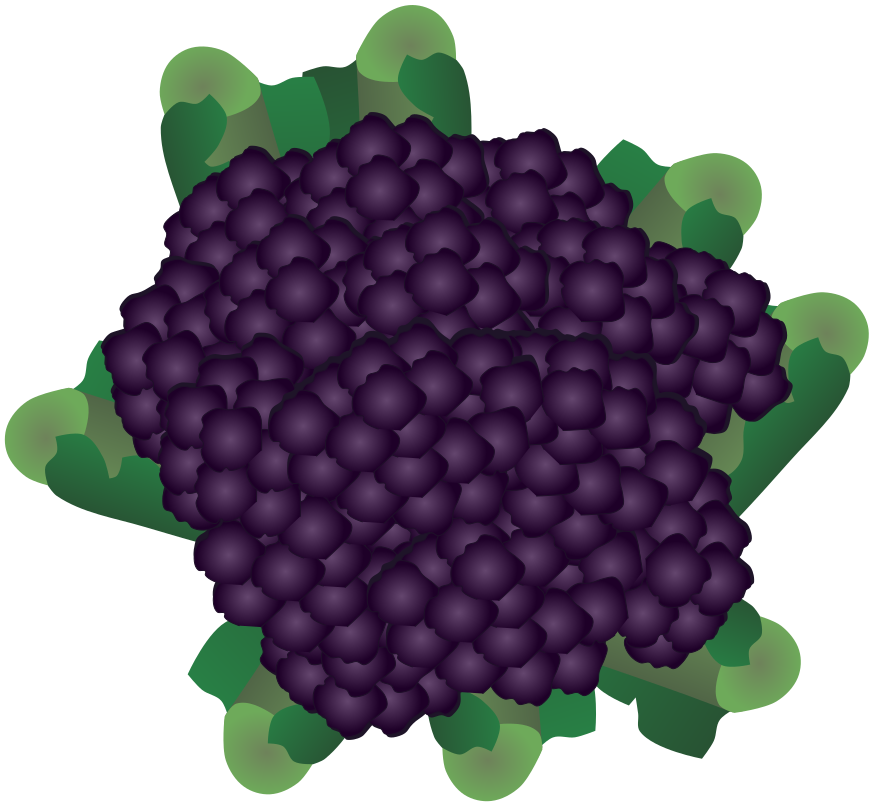 This is an illustration of purple cauliflower, with bright purple buds emerging from among the green leaves. Anthocyanins create the purple color of this purple cauliflower.