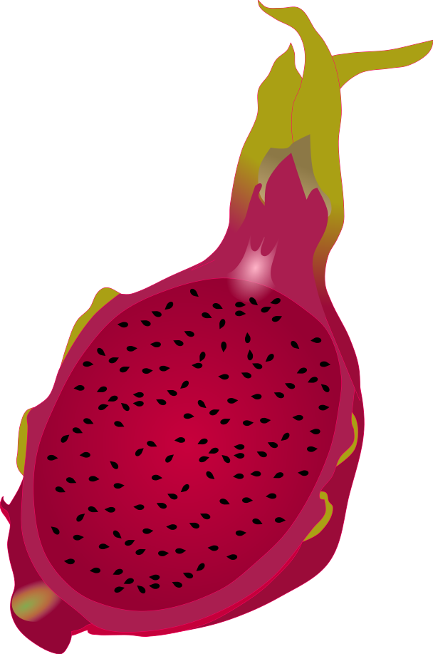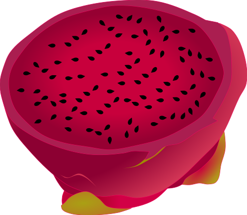 This is an illustration of a dragon fruit cross-section. It shows the red variety of dragon fruit, commonly known as ‘Red Dragon Fruit’.
