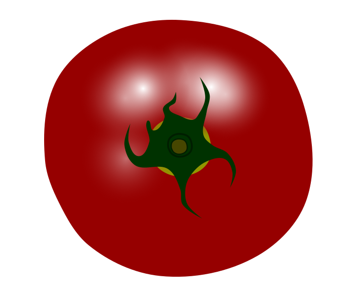 This is an illustration of tomato viewed from top, which is perfectly ripened, colored bright red.