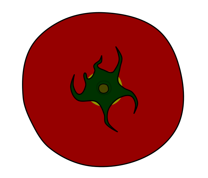 Red Large Tomato top view illustration (Black outline, PNG Transparent for vegetable guides and food education diagrams)