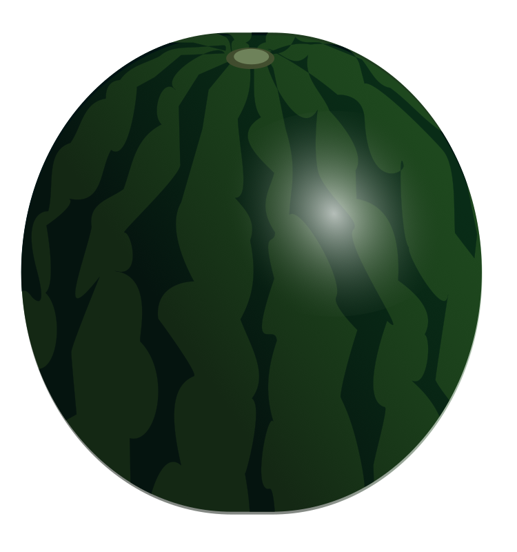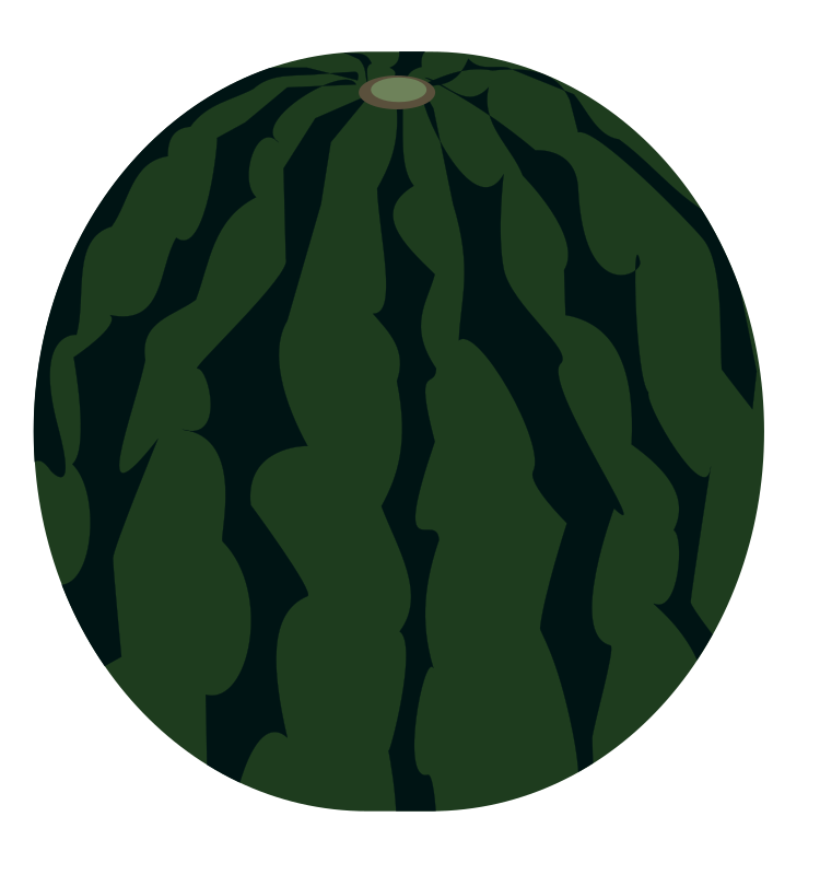 This is an illustration of a watermelon with a beautifully rounded, full, and glossy green and black striped appearance.