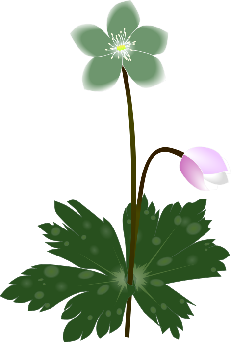 1本の茎に2輪の花が咲くことからこの名がついた、ニリンソウのイラストです。実際には、1~4輪咲くことがありますが、複数同時に咲くことは希少とされている。また、花(萼片)が緑色の場合があり、それをミドリニリンソウと呼びます。