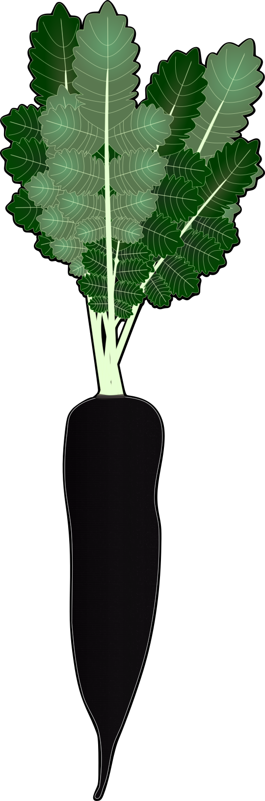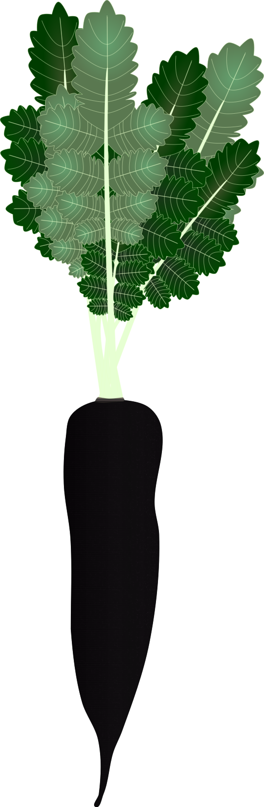 フランスをはじめとするヨーロッパで利用されることの多い表皮が黒い黒長大根のイラストです。辛味が強く、水分が少ないラディッシュで、皮の下は白いです。