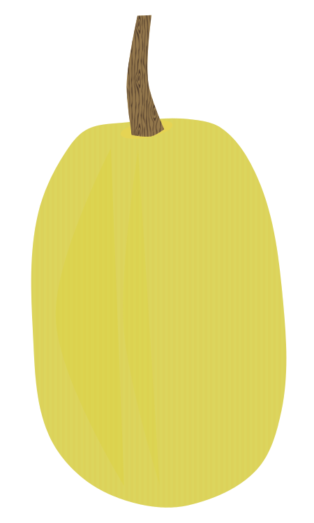 ゆでると繊維がほどけて麺のようになることから“そうめんかぼちゃ”、英名でも“スパゲティ・スクァッシュ”と呼ばれるカボチャの仲間、金糸瓜のイラストです。外見は大きなマクワウリと間違えてしまいそうな見た目です。