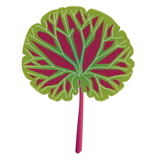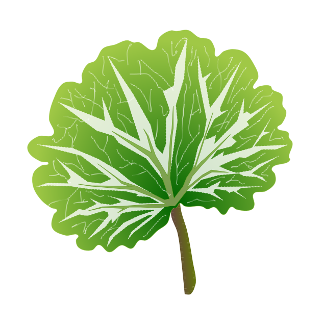 湿り気のある山地や景観として庭園にも植えられることもあるハートを大きく広げたようなかわいらしい形をした葉を持つ「ユキノシタ」のイラストです。ユキノシタには葉脈に沿って白い縞模様で彩られ、その様子を雪の降りた様相に見立てて「ユキノシタ」という名前の語源になったとする説もあります。中にはアントシアニンを生成し、赤い斑を彩らせている葉もあります。葉は春の山菜としてや薬草として利用されることもあります。